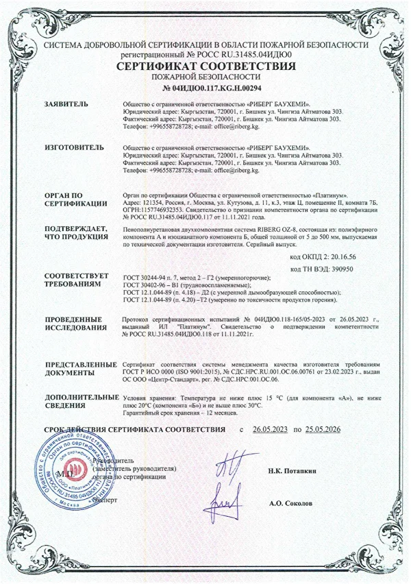We conduct a double quality control of our products. At the first stage, upon receiving components for foam production, we perform an incoming inspection in our laboratory. Additionally, at the output of the production process, we take samples of the finished product and conduct an analysis to ensure that our foam meets the standards and requirements stated by the manufacturing plant
